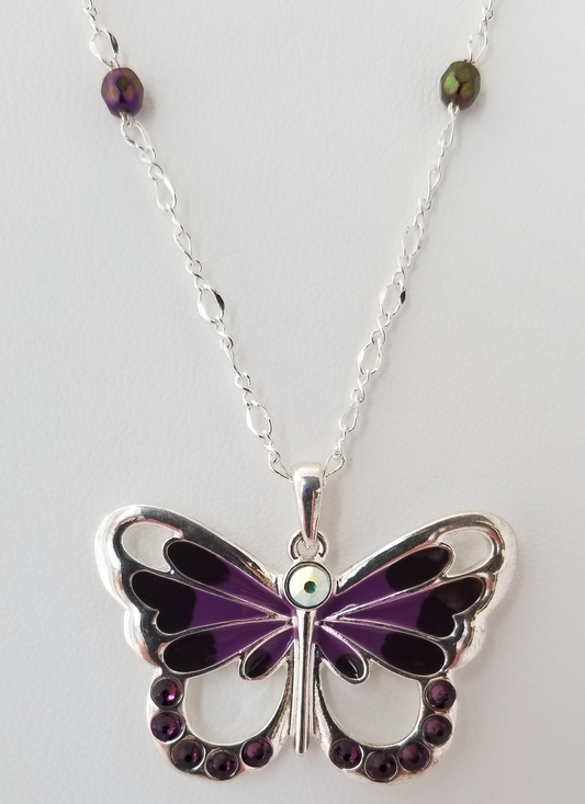 Purple Iris Butterfly Station Necklace