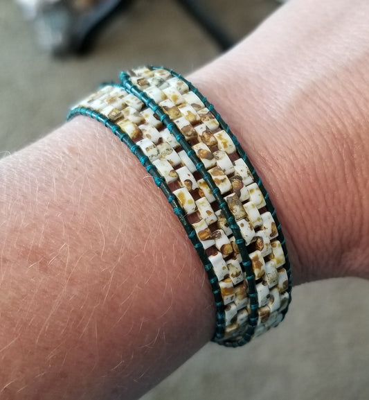 Double Wrap Green Leather Bracelet